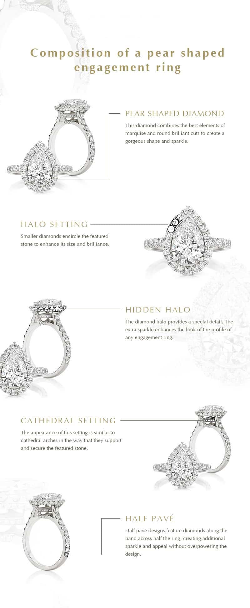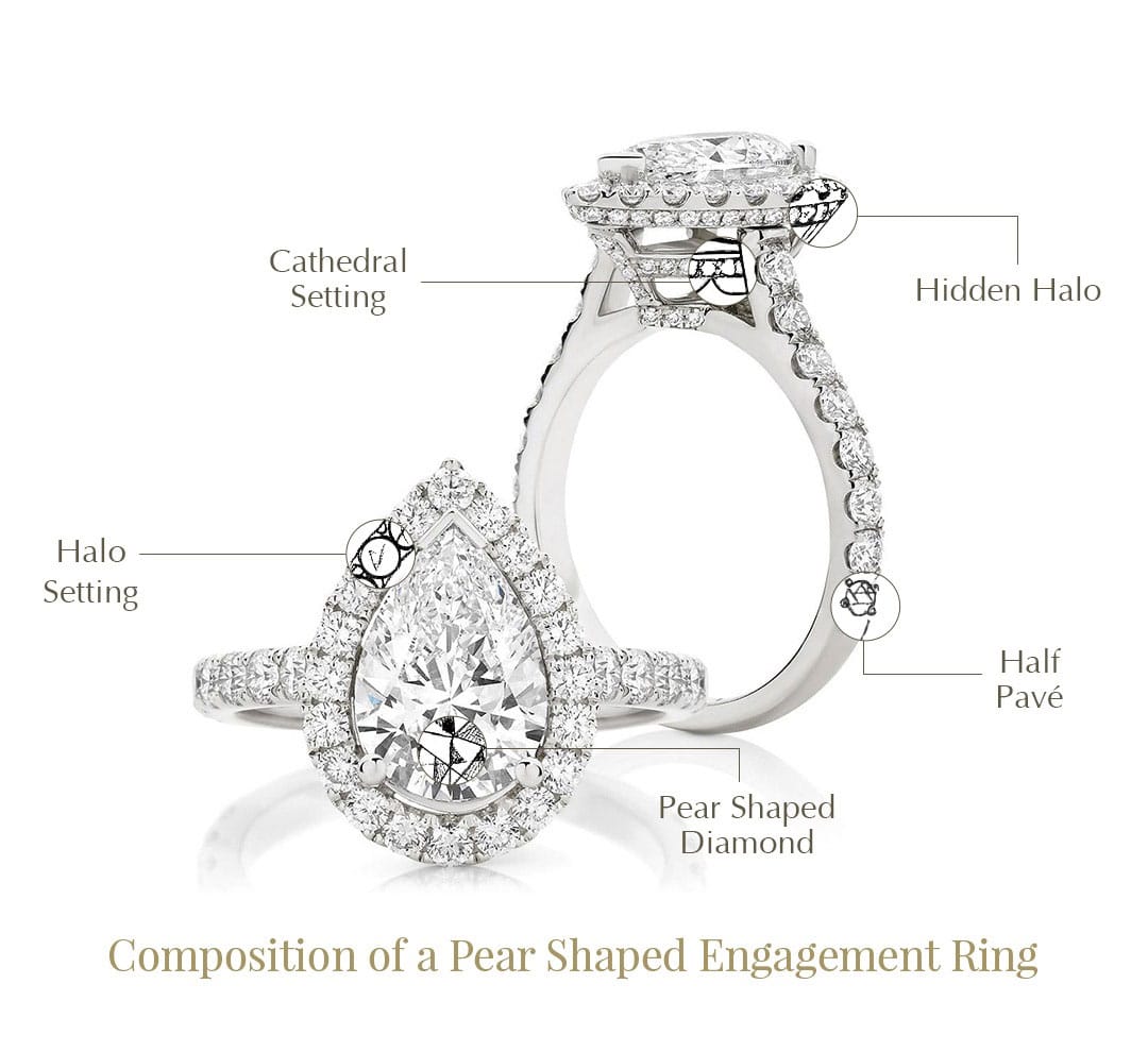 What should I look for in a pear-shaped engagement ring?